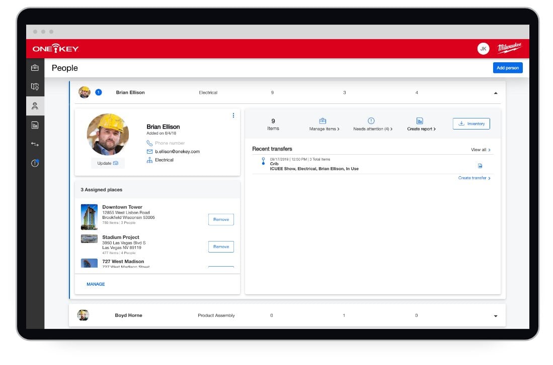 A major feature that was added to One-Key with the 6.0 software update is People Management. 6.0 introduced better One-Key/device synchronization. In addition to you now being able to call, text, or email your guys without leaving the app, 6.0 presented individual tool inventories for added accountability on the jobsite.